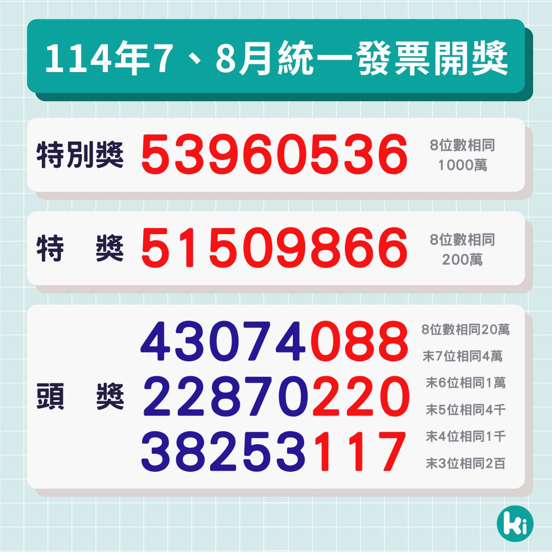 ■ 政府網站:114年7月-8月 統一發票中獎號碼